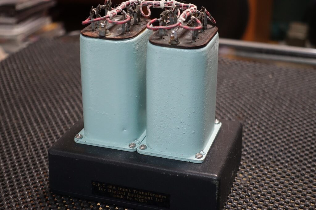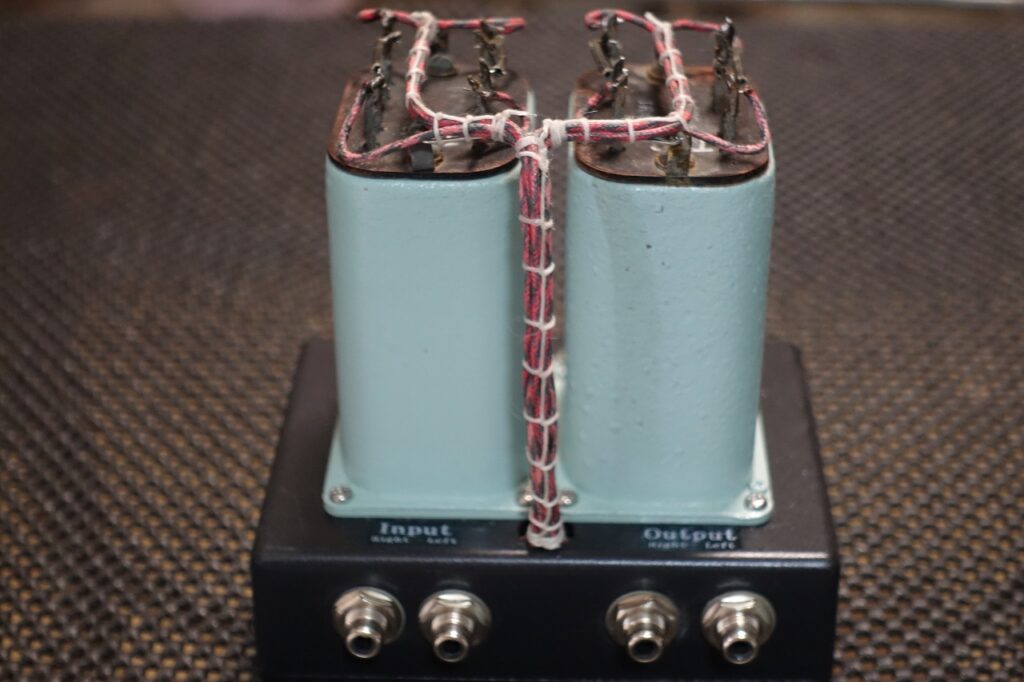 英国GEC/Marconi社製入力トランスを2個使用しステレオ仕様でセッティングしました。昇圧比1:1。デジタル機器等の音質を改善します。配線材はWestern electric社製単線を使用しています。RCAジャックは米国Switchcraft製です。