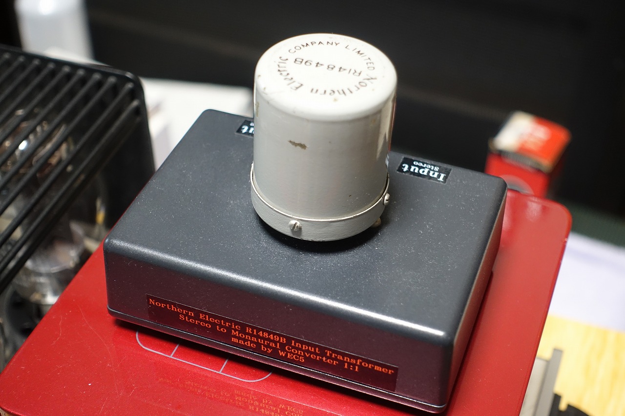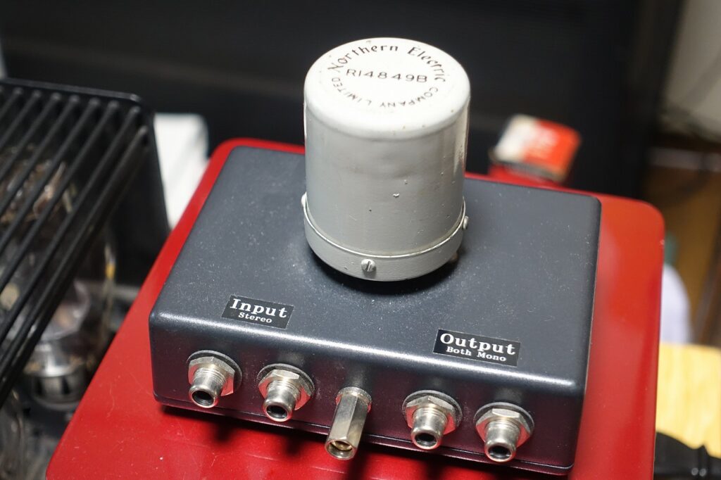 カナダウエスタン社製R14849Bトランスを使用して、ステレオ信号をモノラルに変換するコンバーターです。出力はRCAが2口ありますが、どちらもモノラル信号です。貴重品!!