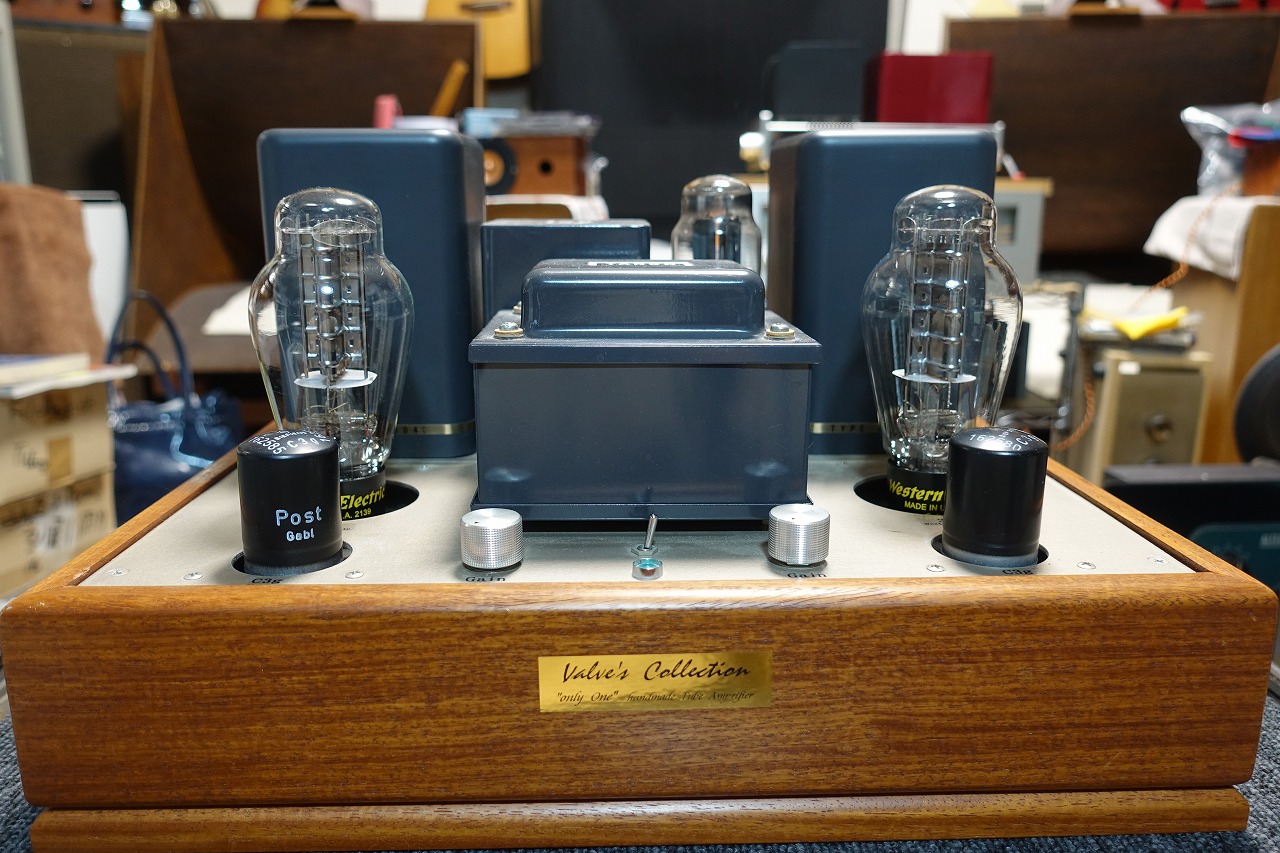 ガレージメーカーのパワーアンプをWE300Bシングルステレオアンプに手直ししました。使用球は2xC3g、2xWE300B、1xGZ37です。勿論、整流管にWE274Bも使用可です。前段のC3gはSiemens社製で3極管接続です。その分全体のゲインは下がりますが、パワフルで素直な音色です。使用トランスはOPTにタムラF-2004C、PTがTangoのMS-200CT、CHはMC-5-250D。特性は10Hz~20KHz+-1dB、最大出力6W+6W、残留ノイズ左右とも0.5mV以下。元々はNFBをかけていましたが、現在は無帰還です。美音です。