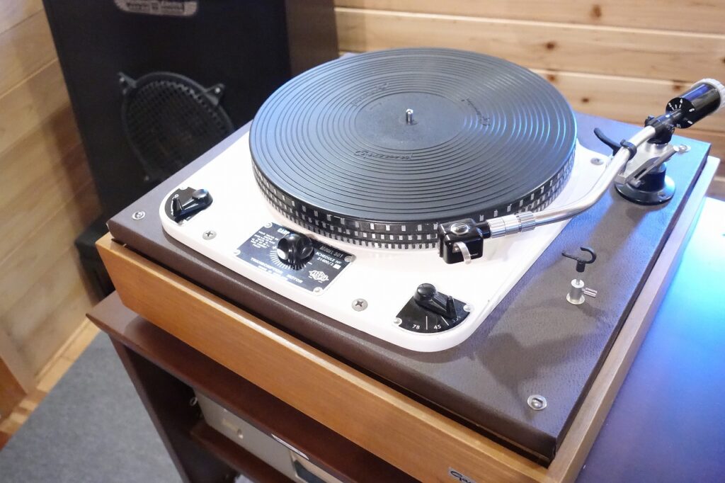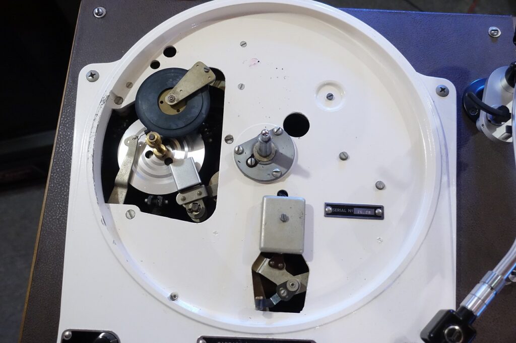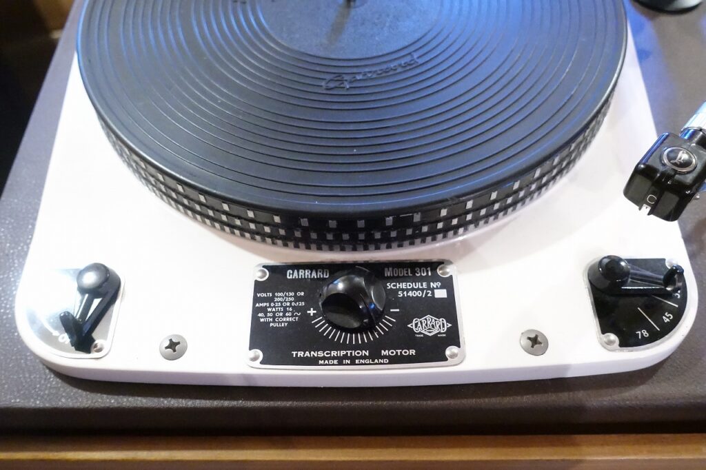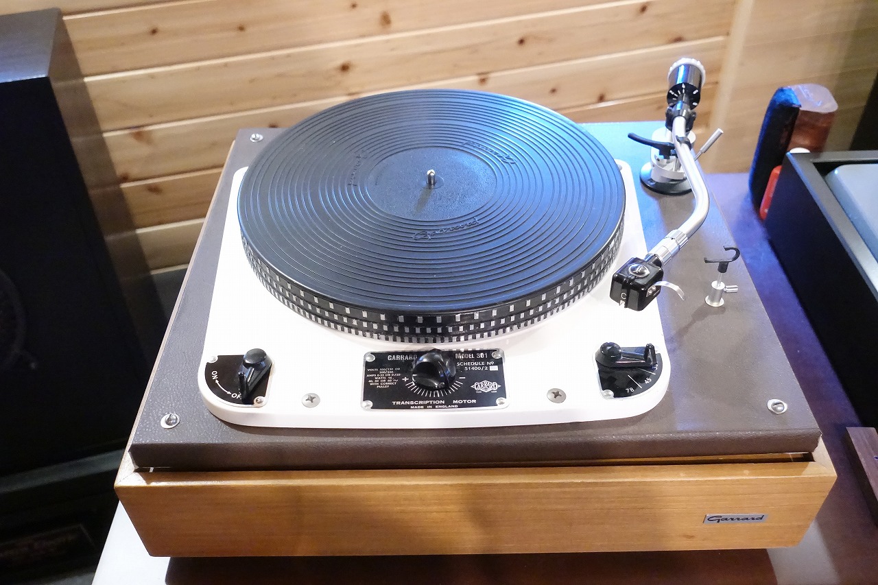 英国Garrard社製ターンテーブル#301とOrtofon社SMG212アーム(アームリフター付き)、初期モノラルカートリッジType-Cとオーディオニックス時代のSPU-GE付。ベースはフローティングタイプの木製です。カートリッジは2個ともOH済み。アイドラーも新品交換済み。現在60Hz用のプーリーが付いていますが、50Hz用に交換可能。綺麗な個体です。カートリッジが不要の場合はご相談ください。